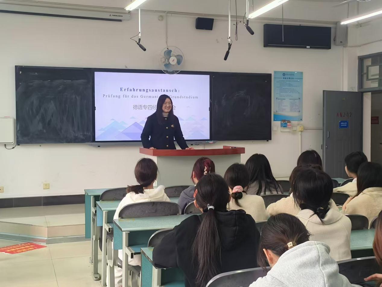 本次德语专业四级考试经验交流会的成功举办,为同学们提供了宝贵的备考经验和应试技巧,增强了同学们的信心,也为即将到来的专业四级考试奠定了良好的基础。相信在老师和学姐们的帮助下,同学们一定能够在专业四级考试中取得优异成绩。