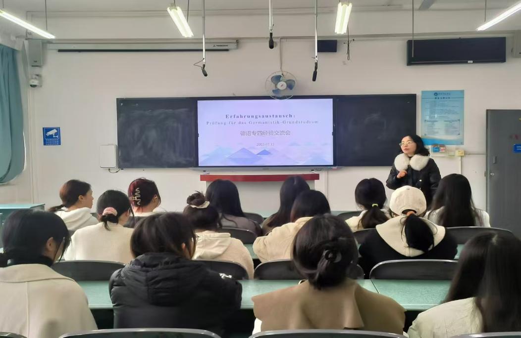 为帮助德语专业23级学生更好地备战即将到来的专业四级考试,3月13日下午,德语教研室在厚德楼202举行德语专业四级考试经验交流会,德语专业23级学生以及22级优秀学生代表参加,活动由德语专业教师刘静静主持。