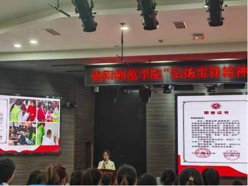 观身边雷锋,传志愿精神。22级学生苟雨欣现场分享了她在2025春运“青春志愿,情满旅途”服务中的英勇表现,她的事迹受到巴中日报专题报道,其本人也被中共巴中市委社会工作部、巴中市志愿者协会授予“乐于助人”荣誉称号。她的实际行动生动诠释了“奉献、友爱、互助、进步”的志愿服务精神,激励在场的每一位同学。