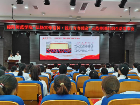 为深入学习贯彻党的二十大精神,充分发挥优秀基层团组织的示范引领作用,3月24日晚上,由校团委主办、外国语学院分团委承办的"弘扬雷锋精神,践行青春使命"示范性团组织生活观摩会在厚德楼246会议室举行。校团委副书记黎云云,外国语学院党委副书记、纪委书记崔芸,文史学院分团委书记王小宇及各学院团支部书记代表、团学干部等200余人参加,活动由外国语学院分团委书记罗春艳主持,外国语学院2023级3班、4班团支部进行团组织生活会展示。